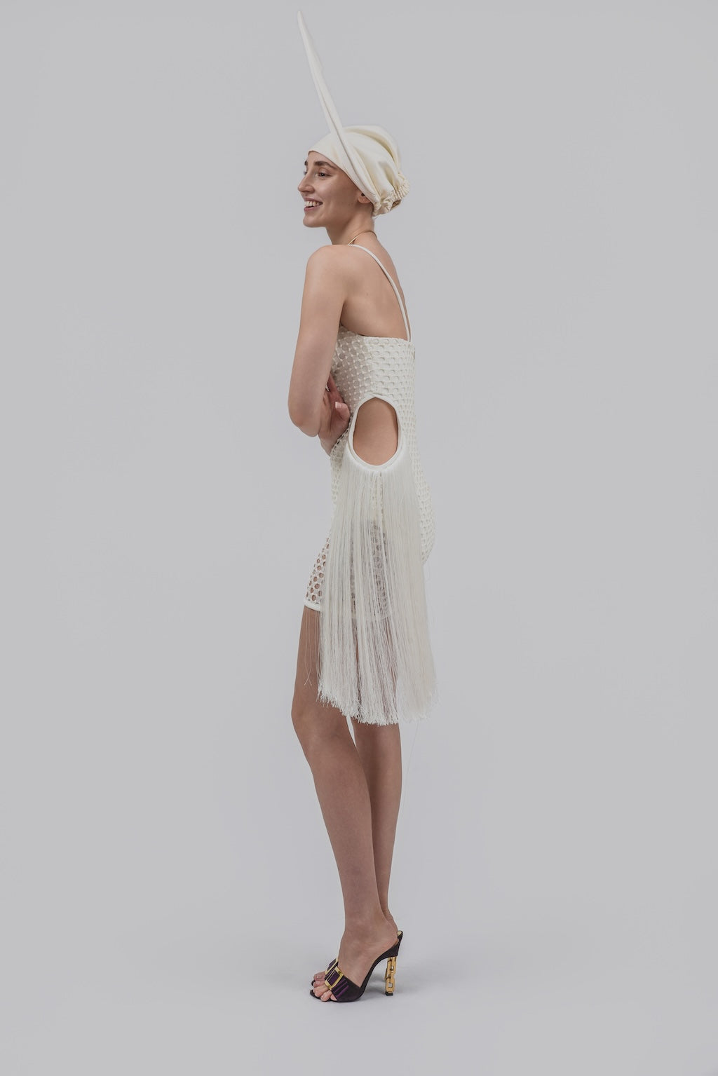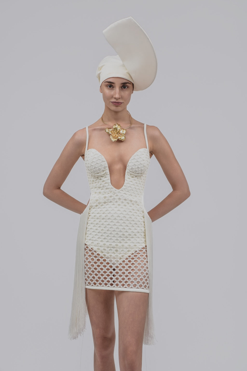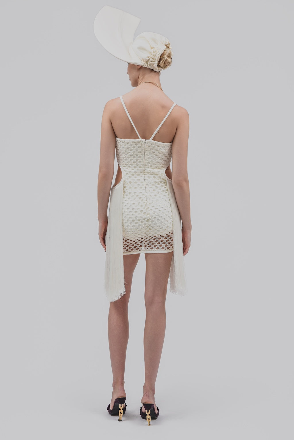 Jemilia fringed stretch cotton lace grid maxi skirt