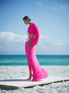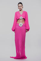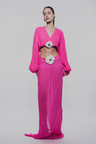 Indulge in luxury with the Attina Skirt. featured our signature mushroom pleat, creating a visually stunning piece. The addition of hand-beaded chiffon flowers with sparkling crystals adds a touch of glamour and sophistication.