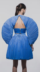 Athena high-waisted bubble skirt in our signature mushroom pleats featuring hand beaded crystal all over skirt