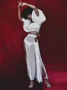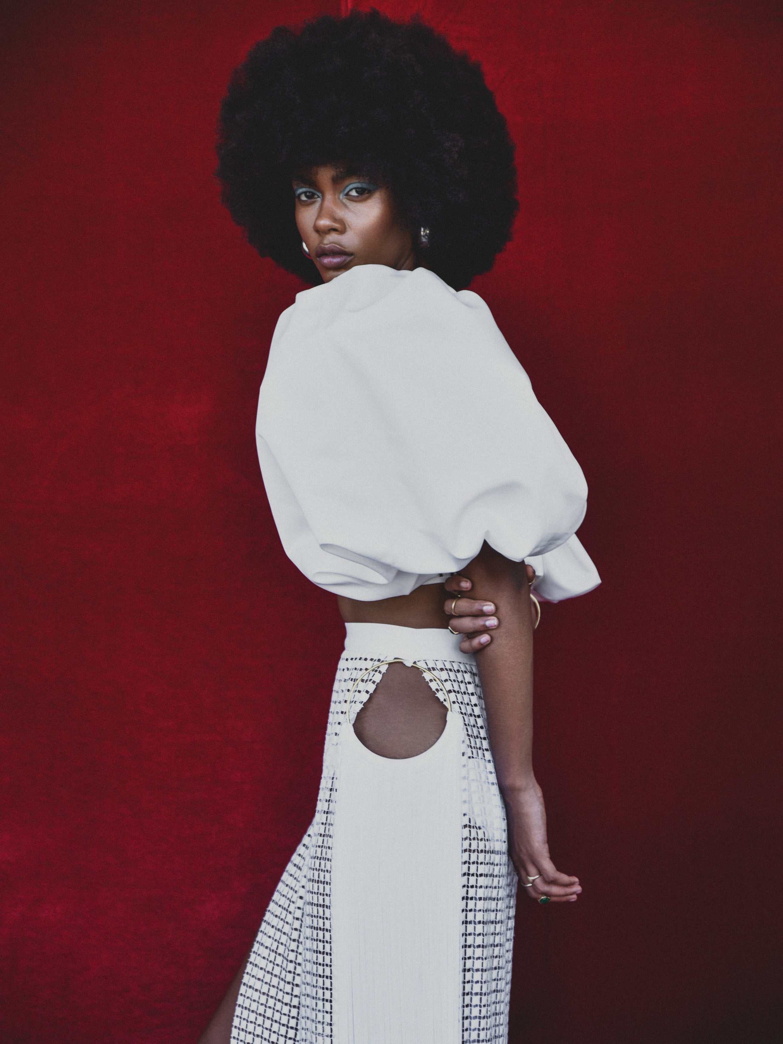 Ifama bubble sleeve stretch peau de soie crop top