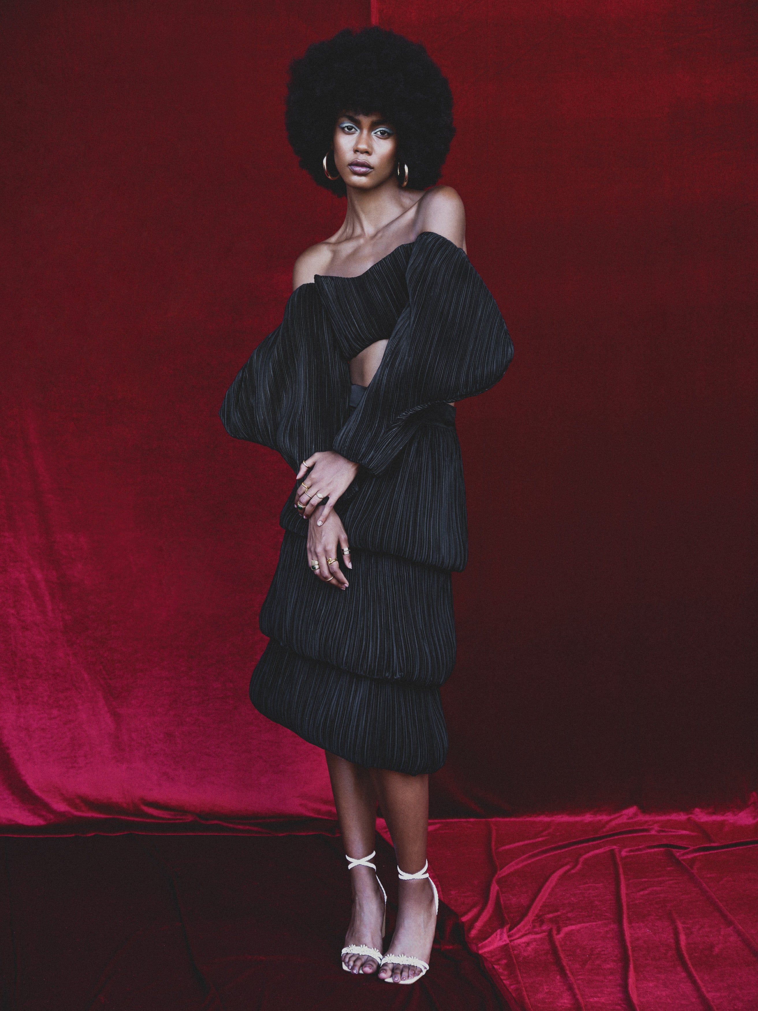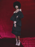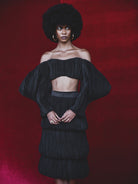 - Slim fit, high rise, tiered bubble skirt, midi hem, lined