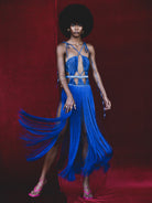 Gia fringe cutout stretch peau de soie midi dress